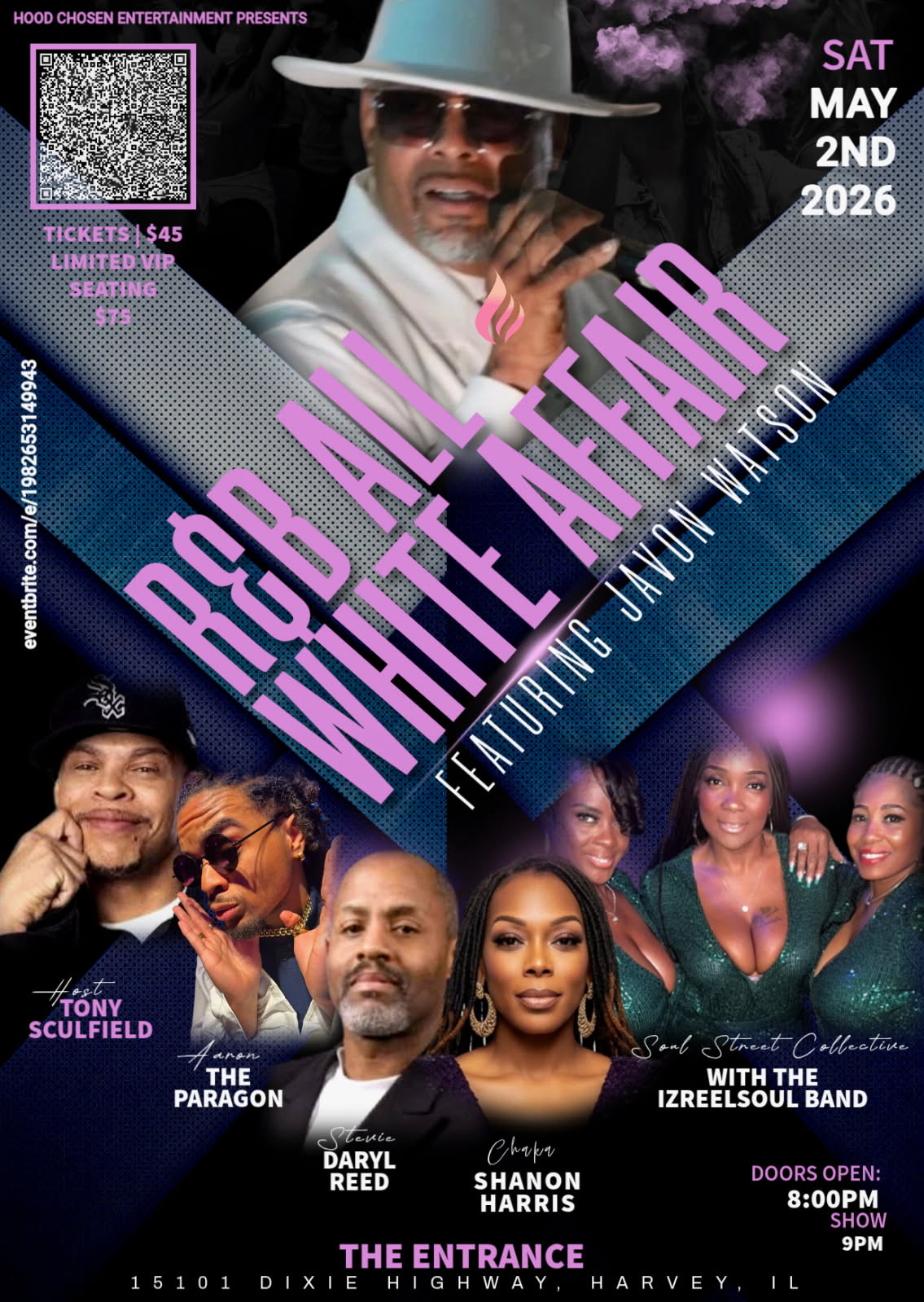 Get ready to groove all night long in your freshest white outfit with Javon Watson at the R&B All White Affair with The Izreelsoul band